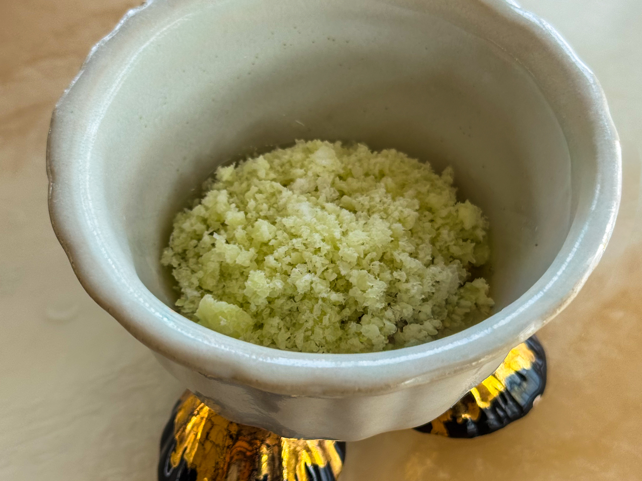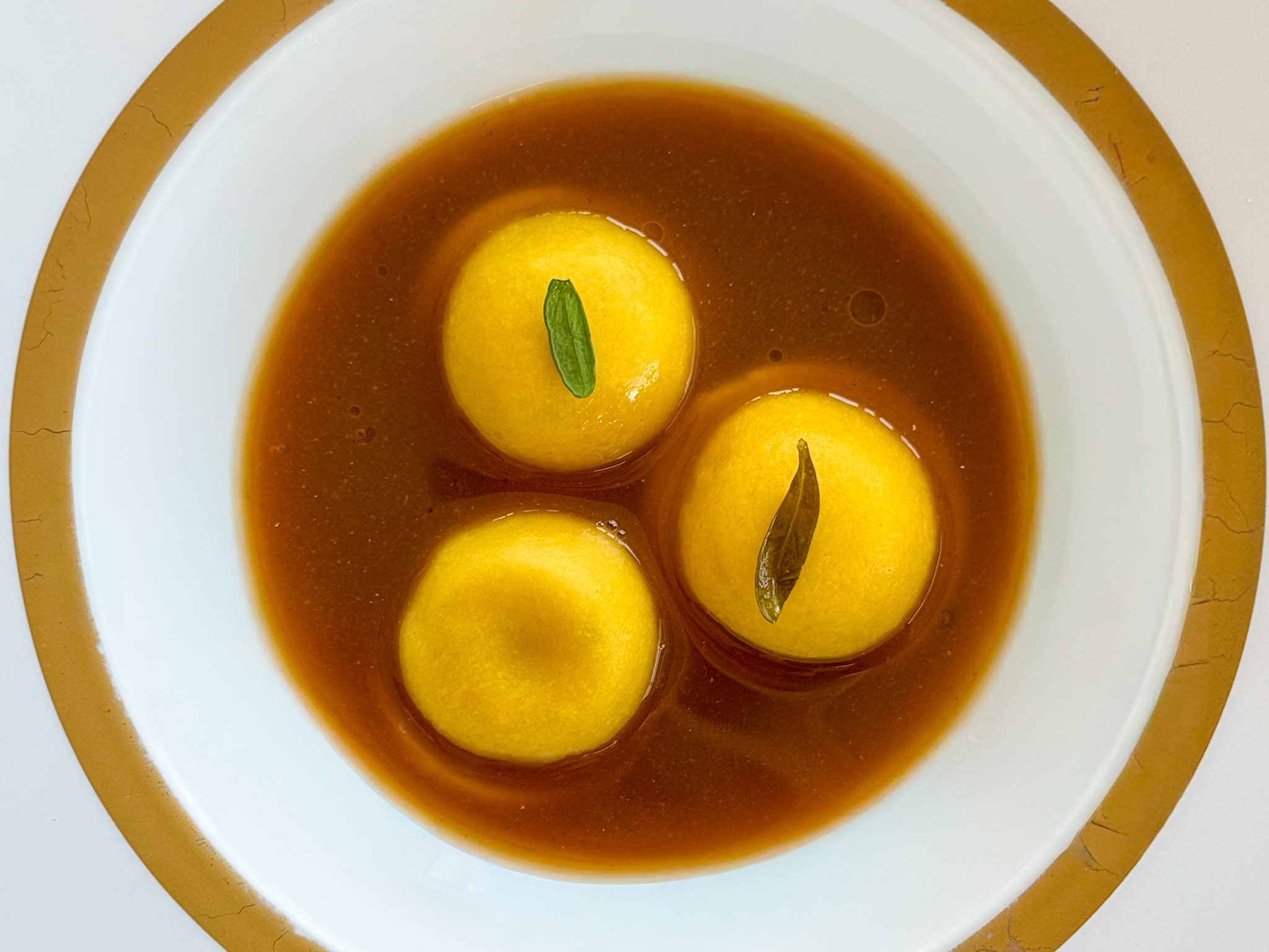 A tenere insieme tutto, più dei singoli piatti, c’è una linea agrumata e balsamica che ricompare spesso, a volte in primo piano e a volte come corrente sotterranea. Il pompelmo accanto all’ostrica, l’arancia nel fondo dei lumachini evocato da Ciotti parlando dei bottoni di triglia, foie gras e pepe verde, il cedro nel maccheroncino, la tensione tra dolcezza, amaro e freschezza come tratto di famiglia prima ancora che di stile. Qui il gusto da Nostrano diventa un modo di respirare il piatto. Vale soprattutto per i bottoni di triglia, foie gras e pepe verde, che Ciotti legge come una specie di mare e monti rifatto a modo suo, con il pepe che “condisce” la bocca in anticipo e il brodetto che rimette in asse il tutto, tra sapidità, grassezza e una punta quasi elettrica. È un piatto che spinge la cucina di Ciotti fuori dal recinto adriatico più prevedibile e le regala un accento quasi francese, salvo poi riportarla subito a riva con quel fondo di triglia, con il brodetto e con l’abitudine, molto sua, di dare sempre ai piatti una via di ritorno.