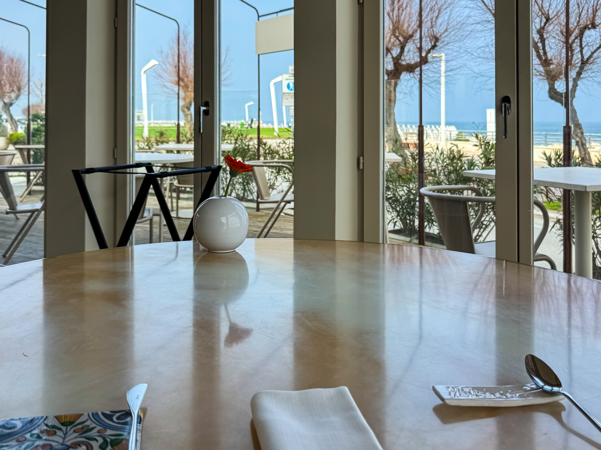 La sala affacciata sul mare del ristorante Nostrano