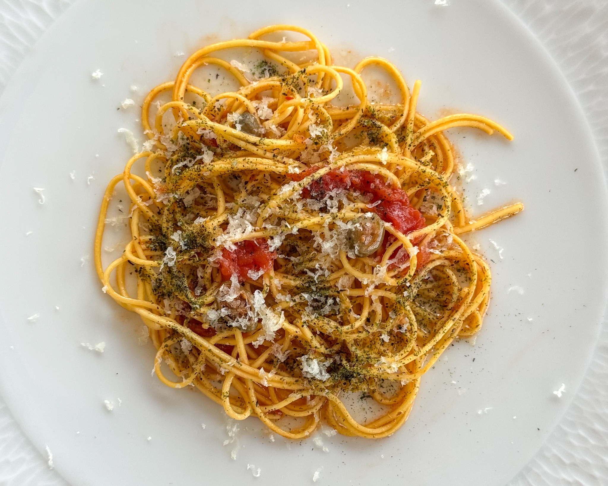 Maccheroncini di Campofilone in potacchio, cedro e alghe